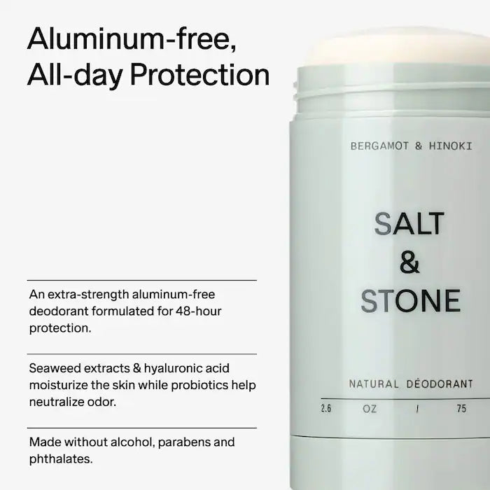 - 1 oz/ 28 g Salt & Stone Bergamot & Hinoki Extra-Strength Aluminum-Free Deodorant